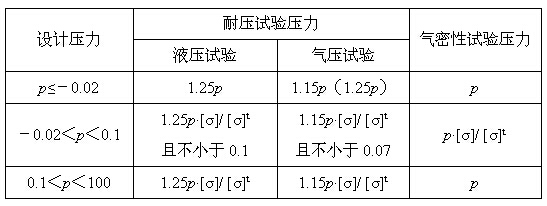 表2.4.1 設(shè)備耐壓試驗(yàn)和氣密性試驗(yàn)壓力(MPa)
