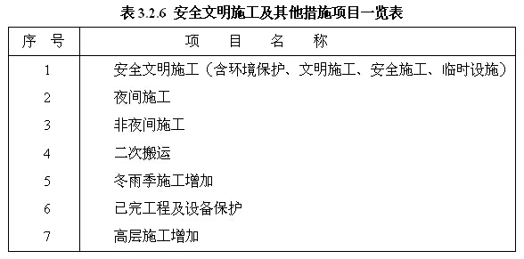 表3.2.6 安全文明施工及其他措施項目一覽表