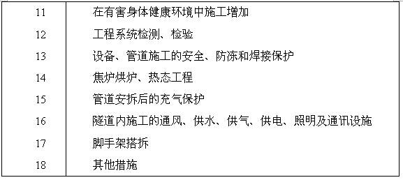 (2)當擬建工程中有設備、管道冬雨季施工,有易燃易爆、有害環(huán)境施工,或設備、管道焊接質量要求較高措,施項目清單可列項“設備、管道施工的安全防凍和焊接保護”。