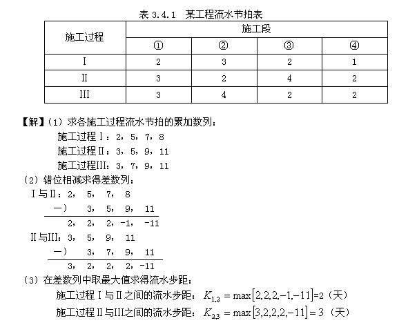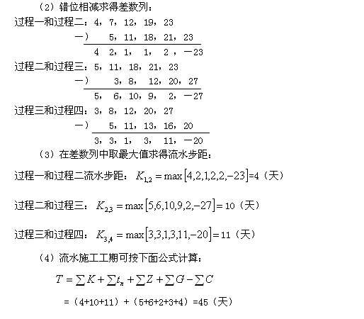 (3)在差數(shù)列中取最大值,即為這兩個相鄰施工過程的流水步距。