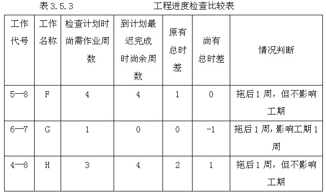 (2)根據(jù)原進度計劃計算檢查日期應(yīng)該進行的工作從檢查日期到原計劃最遲完成時尚余時間;