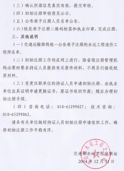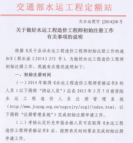 云南水運工程造價師初始注冊工作有關事項通知