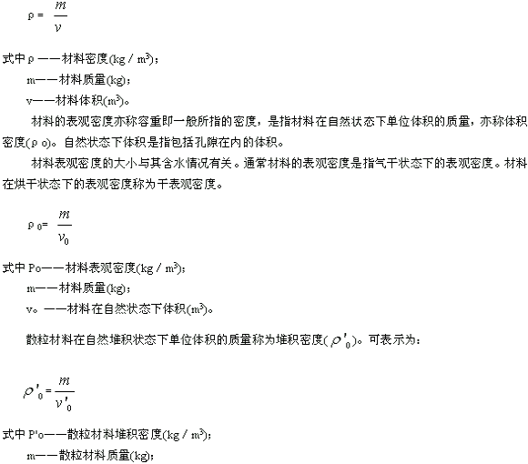 材料的密度是指材料在絕對密實(shí)狀態(tài)下單位體積的質(zhì)量,又稱質(zhì)量密度(ρ)。絕對密實(shí)狀態(tài)下的體積是指不包括孔隙在內(nèi)的體積。