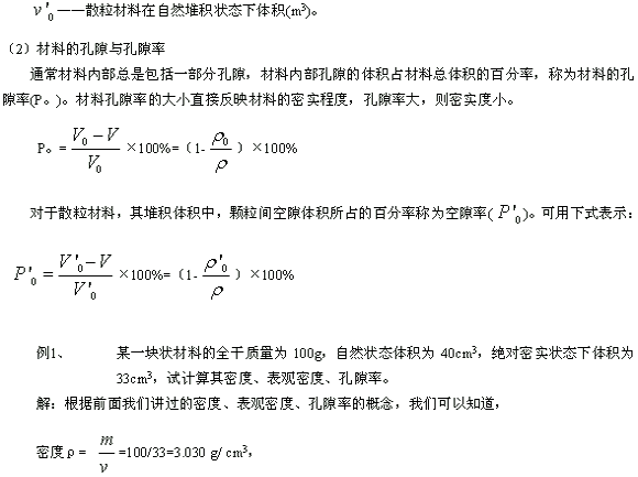 (1)材料的密度、表觀密度和堆積密度
