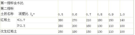 紅粘土承載力基本值(kPa) 表7-9 $lesson$