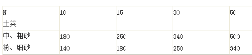 注:①本表只適用于堆填時間超過十年的粘性土,以及超過五年的粉土;