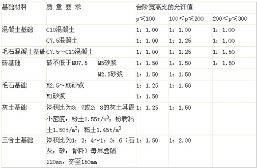 剛性基礎(chǔ)臺(tái)階寬高比的允許值 表7-19