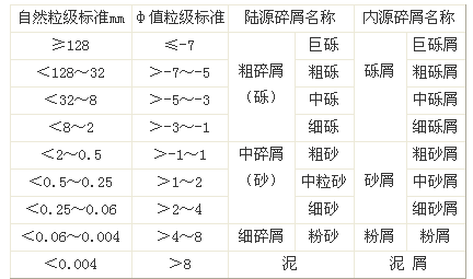 11. 粒度:即碎屑顆?;蚓w顆粒大小,也稱(chēng)粒級(jí),各種沉積巖的粒級(jí)劃分見(jiàn)表2、表3。