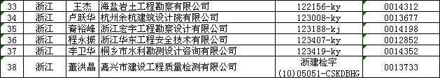 浙江2013年符合巖土工程師初始注冊條件名單(第二批)