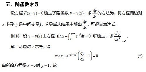 本節(jié)主要歸納總結(jié)求函數(shù)的導數(shù)和微分的主要方法。導數(shù)與微分雖然是兩個不同的概念,但它們之間也有關系: 。因此只要求出 的導數(shù),由此關系式即可得到它的微分。所以,下面主要是總結(jié)求函數(shù)的導數(shù)的方法。