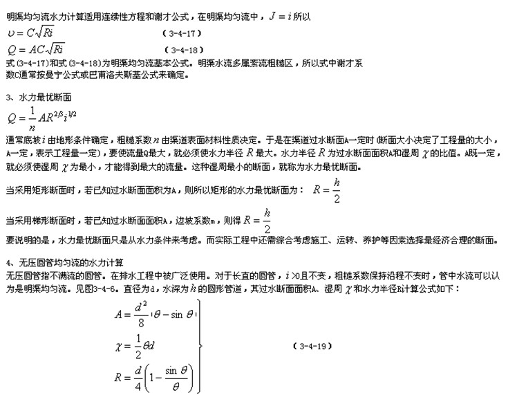 所以明渠均勻流是在特定條件下,作用在液流上的重力和阻力相平衡的產(chǎn)物。它的計(jì)算特別簡(jiǎn)單,因此雖然實(shí)際工程中常遇到明渠非均勻流,但在長(zhǎng)直的順坡人工溝渠中,取最大流量來(lái)校核渠道的通過(guò)能力,或按最大流量來(lái)設(shè)計(jì)斷面時(shí),按均勻流計(jì)算可以很方便地得到足夠準(zhǔn)確的結(jié)果。