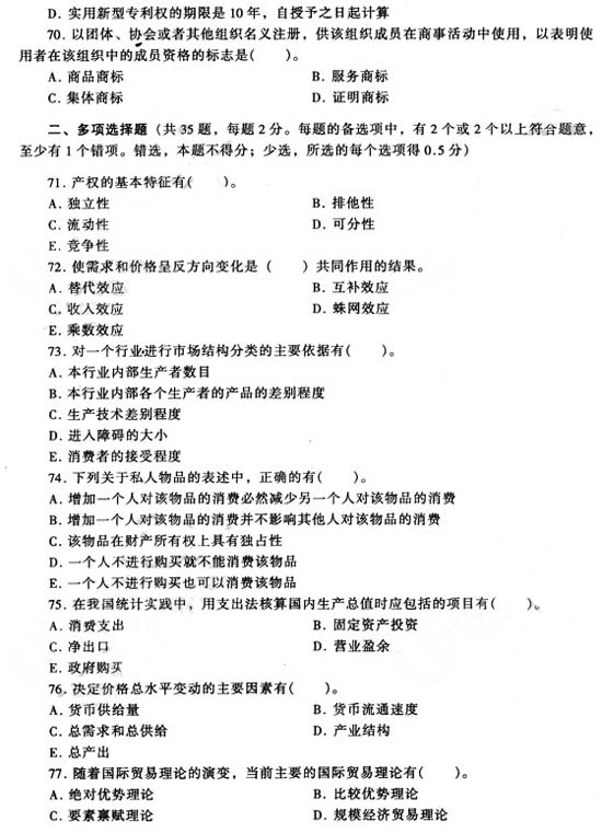 2007年中級(jí)經(jīng)濟(jì)師《經(jīng)濟(jì)基礎(chǔ)》試題