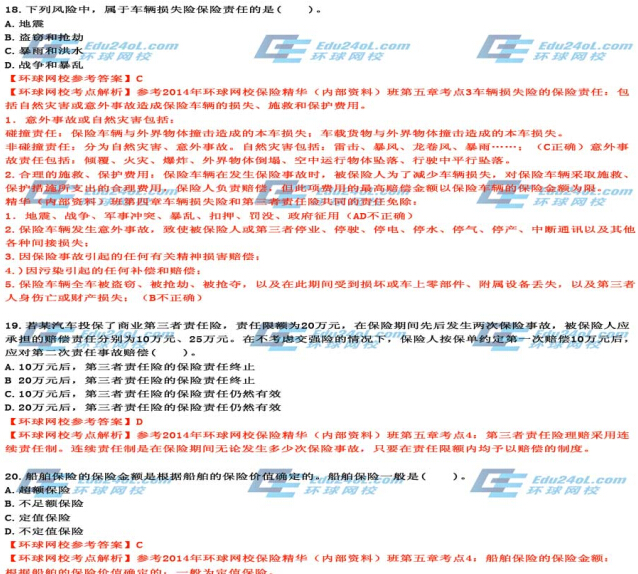 摘要 環(huán)球網(wǎng)校2014年中級保險真題答案解析,預(yù)祝大家都能順利通過考試