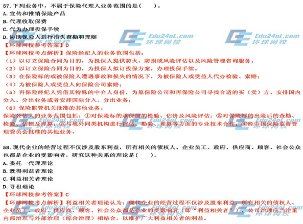 2014年經(jīng)濟(jì)師考試《中級(jí)保險(xiǎn)》真題及答案解析51-60
