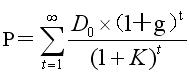 式中,D0為評(píng)價(jià)時(shí)已經(jīng)發(fā)放的股利; g為股利每年的增長(zhǎng)率;