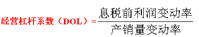 產(chǎn)銷量變動(dòng)率=息稅前利潤(rùn)變動(dòng)率÷經(jīng)營(yíng)杠桿系數(shù)(DOL)