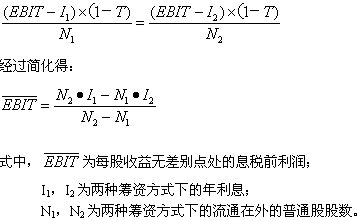 2.每股收益無差別點(diǎn)處的息稅前利潤的計(jì)算公式為: