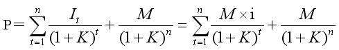 K是折現(xiàn)率 (可以用當時的市場利率或者投資者要求的必要報酬率替代);M是債券面值; i是票面利率;