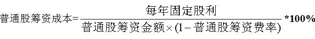 ①在每年股利固定的情況下,采用股利折現(xiàn)模型計算普通股成本的公式為: