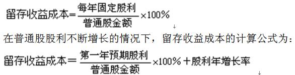 留存收益成本的計算需分普通股股利固定和普通股股利逐年固定增長兩種情況: