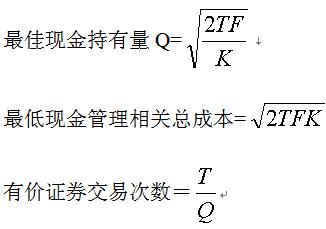 最佳現(xiàn)金持有量,是持有現(xiàn)金的機會成本與固定轉(zhuǎn)換成本相等時的現(xiàn)金持有量。