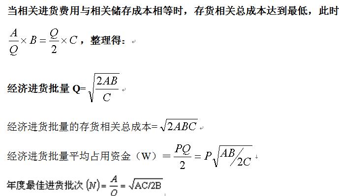 存貨相關(guān)總成本=相關(guān)進貨費用+相關(guān)儲存成本