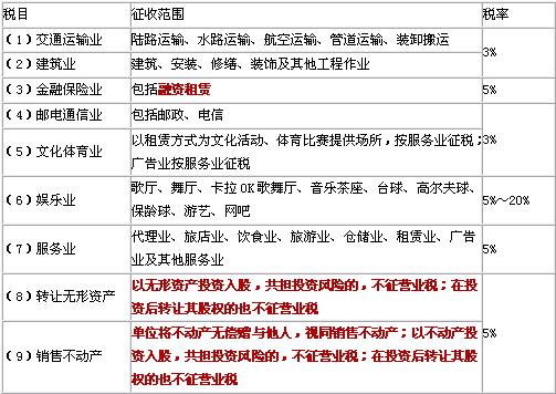 (一)征稅范圍:按行業(yè)9個(gè)