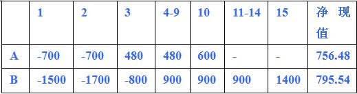 NPVa’> NPVb’,所以A方案優(yōu)于B方案