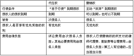 代位權(quán)和撤銷權(quán)的比較表