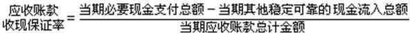 該指標(biāo)反映了企業(yè)既定的會計期間預(yù)期現(xiàn)金支付數(shù)量扣除各種可靠、穩(wěn)定性來源后的差額,必須通過應(yīng)收款項有效收現(xiàn)予以彌補的最低保證程度。