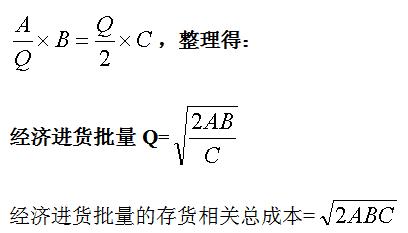 經(jīng)濟(jì)進(jìn)貨批量基本模型是以許多假設(shè)為前提的,包括不允許出現(xiàn)缺貨情形,故不存在缺貨成本,此時(shí)與存貨訂購(gòu)批量、批次直接相關(guān)的就只有進(jìn)貨費(fèi)用和儲(chǔ)存成本兩項(xiàng)。這樣,進(jìn)貨費(fèi)用與儲(chǔ)存成本總和最低水平下的進(jìn)貨批量就是經(jīng)濟(jì)進(jìn)貨批量。