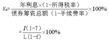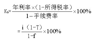 式中:Kb:銀行借款資本成本率;i:銀行借款年利率:f:籌資費用率;T:所得稅率。