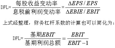 財務杠桿系數(shù) 財務杠桿系數(shù)(DFL),是普通股盈余變動率與息稅前利潤變動率的倍數(shù)。