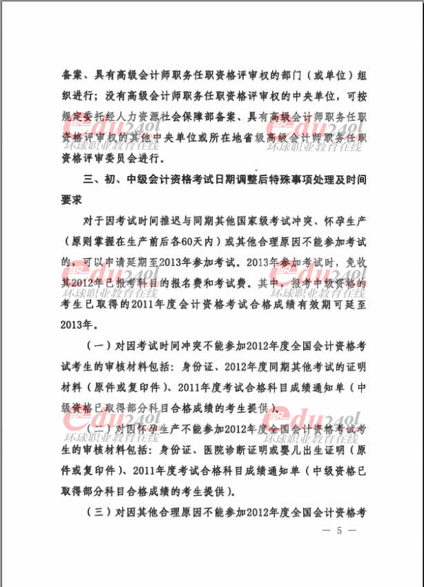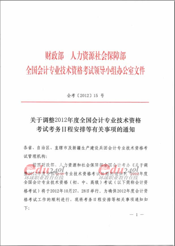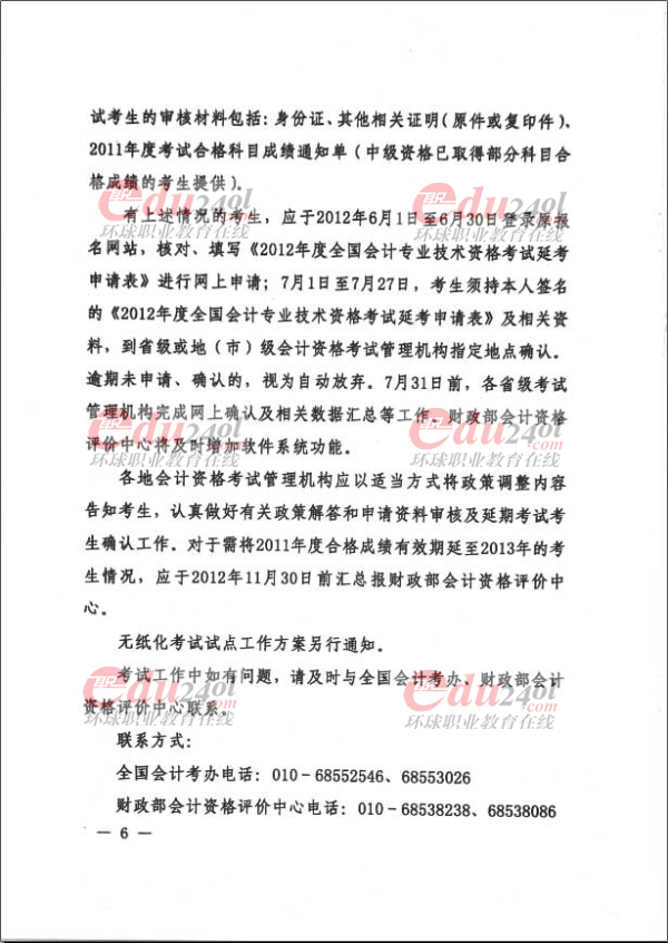 2012年度全國會計專業(yè)技術(shù)資格考試延課公告