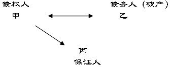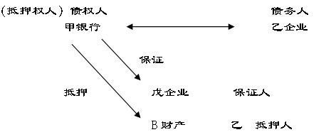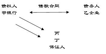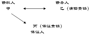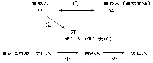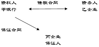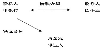假設(shè),乙企業(yè)需要流動(dòng)資金向甲銀行借款,為保證該借款到期甲銀行能收回,丙企業(yè)與甲銀行簽訂保證合同,約定乙企業(yè)到期不能償還借款,丙企業(yè)保證代為償還。三方法律關(guān)系為,甲乙之間是借款合同(主合同)的當(dāng)事人;甲丙之間是保證合同(從合同)的當(dāng)事人,乙是保證關(guān)系中的被保證人。