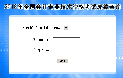 西藏2012年會(huì)計(jì)職稱(chēng)考試成績(jī)查詢(xún)?nèi)肟?/h1>