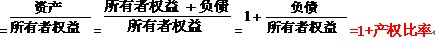 資產(chǎn)負債率×權(quán)益乘數(shù)=(負債/資產(chǎn))*(資產(chǎn)/所有者權(quán)益)=負債/所有者權(quán)益=產(chǎn)權(quán)比率