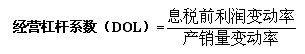 計劃期息稅前利潤變動率=經(jīng)營杠桿系數(shù)(DOL)×產(chǎn)銷量變動率