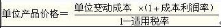價(jià)格×(1-稅率)=單位變動(dòng)成本+單位利潤(rùn)=單位變動(dòng)成本+單位變動(dòng)成本×成本利潤(rùn)率