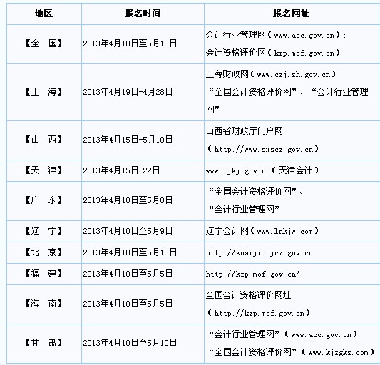 2013年初級會計職稱考試報名時間和報名網(wǎng)址匯總