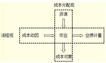 圖中垂直部分反映了成本分配觀。成本分配是從資源到作業(yè),再?gòu)淖鳂I(yè)到成本對(duì)象,而這一流程正是作業(yè)成本計(jì)算的核心。