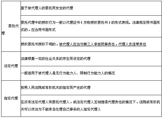(三)代理的種類代理可分為委托代理、法定代理和指定代理。