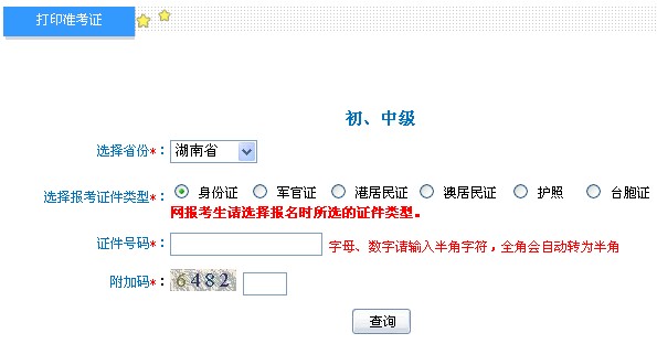 湖南省2013年中級會計職稱考試準(zhǔn)考證打印入口