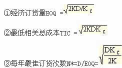 相關(guān)總成本TC(Q)= 變動的訂貨成本+變動儲存成本= D/Q×K+ Q/2?KC