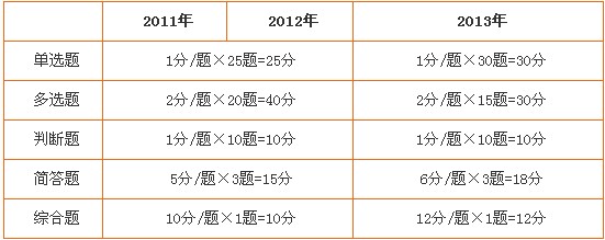 分析:今年考試,多選題的分值比往年減少,減少部分的分值分別分布在單選、簡答、綜合題目上,說明選擇題的得分難度比往年降低,但是考到的知識點(diǎn)更多于往年。