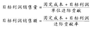 目標(biāo)利潤=(單價一單位變動成本)×銷售量一固定成本