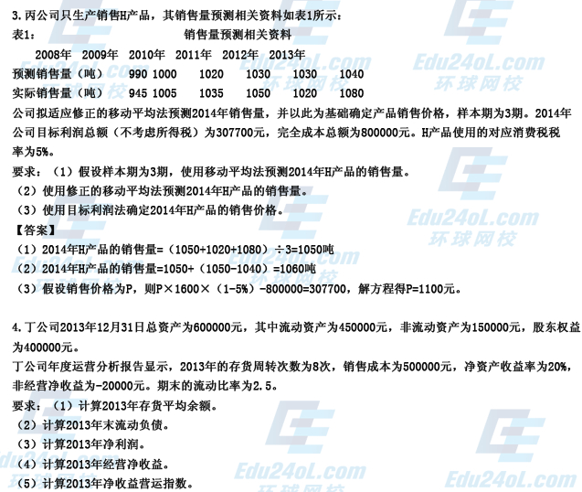 摘要 2014中級(jí)會(huì)計(jì)職稱《中級(jí)財(cái)務(wù)管理》考試真題及參考答案