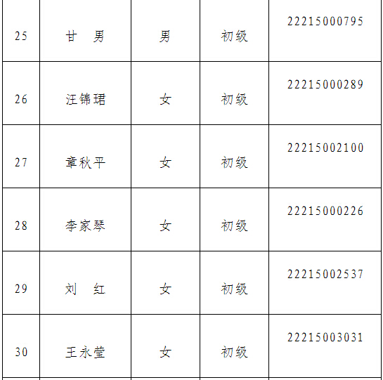 根據(jù)省人社廳《關(guān)于公布2014年度會計(jì)專業(yè)技術(shù)資格考試合格人員名單的通知》(皖人社秘〔2015〕46號)精神,現(xiàn)將2014年度會計(jì)專業(yè)技術(shù)資格考試(當(dāng)涂地區(qū))合格人員名單公布于后。