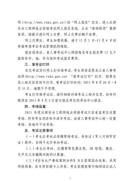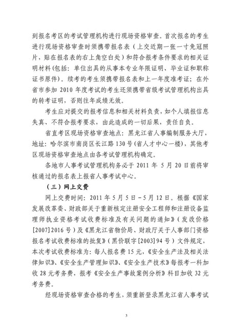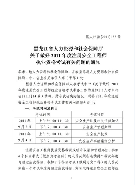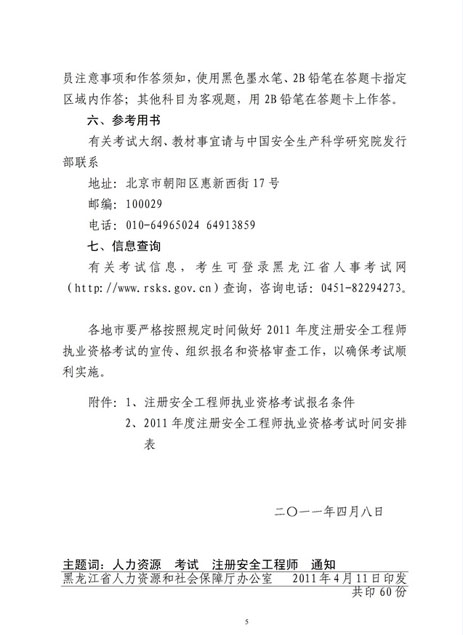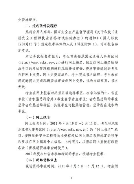 黑龍江2011年安全工程師考試報(bào)名時(shí)間4月19日-5月11日