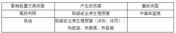 人體受到超過其承受能力的各種形式能量作用時受傷害的情況見表3―3;人體與外界的能量交換受到干擾而發(fā)生傷害的情況見表3―4。